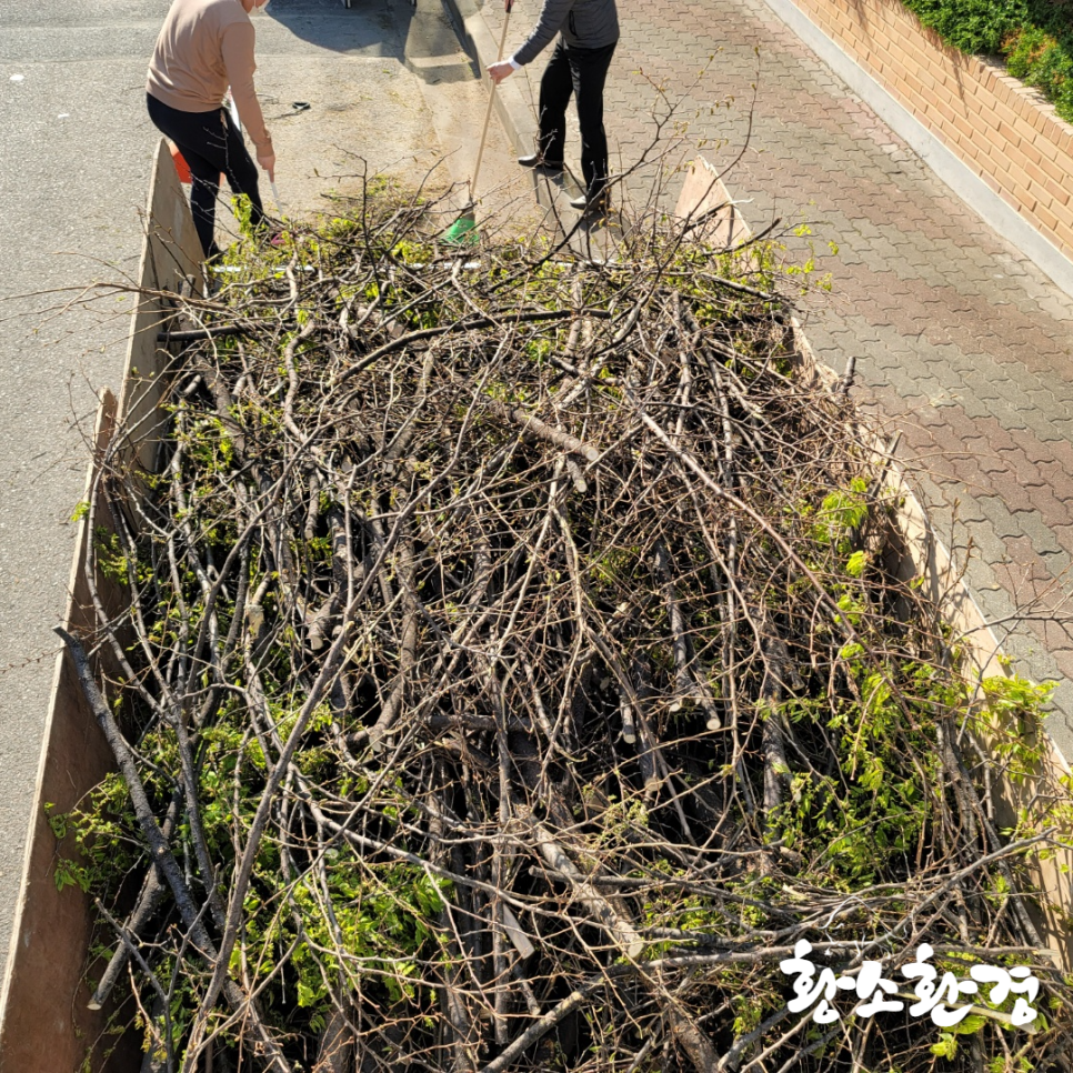 문의를 받고 바로 현장으로 찾아가 보니 많은 나뭇가지들이 한 곳에 모여 섞여 쌓여있는 모습이 보입니다.