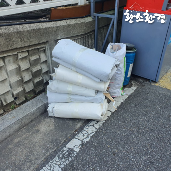 폐기처리 해야 하는 마대 자루가 한가득 쌓여있는 모습이 보였는데요.