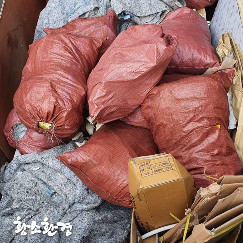 처리를 위해 바로 현장으로 달려가니 수많은 포댓자루가 산처럼 쌓여있고,