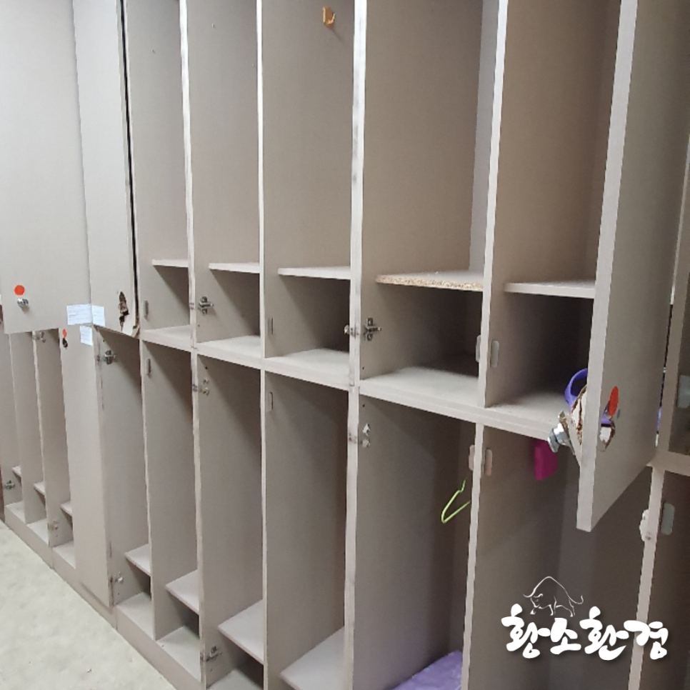 모든 락커에 문을 떼어주고 주변에 있는 폐기물을 제거하여