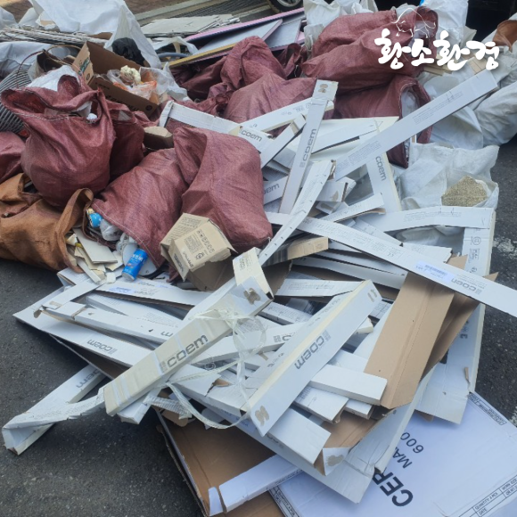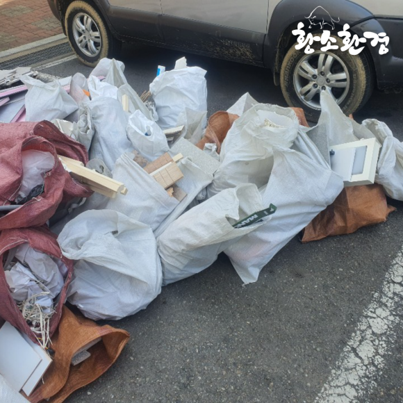 마대 자루를 전부 옮겨나르면서 주변에 몰려 있는 폐기물도 빠르게