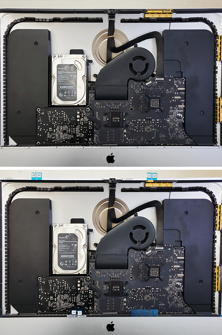 아이맥 액정 제품은 나사가 없이 양면테이프로만 고정이 돼있습니다. 그만큼 애플 정품 리필킷를 꼭 사용해야 합니다.중국산 카피(짝퉁) 제품 사용시 액정 들뜸현상 또는 너무 강력해서 다시는 뜯지 못하거나 또는 너무 접착력이 부족하여 액정이 아이맥과 분리되어 파손도 생길 수 있습니다.