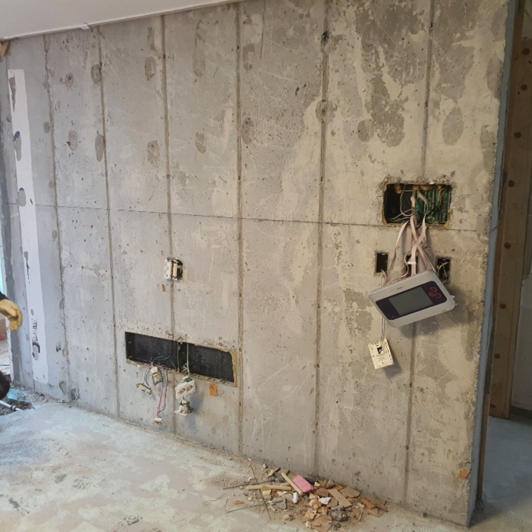 작업에 몰두하다 보니 어느새 벽에 있는 타일 철거 작업이 끝이 났는데요. 벽을 철거하니 한층 더 넓어 보이는 현장의 모습이 보입니다.