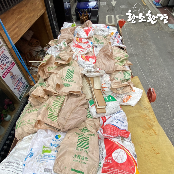 현장에 도착하니 폐기물을 정리하여 전부 마대 자루에 넣어두셨는지,