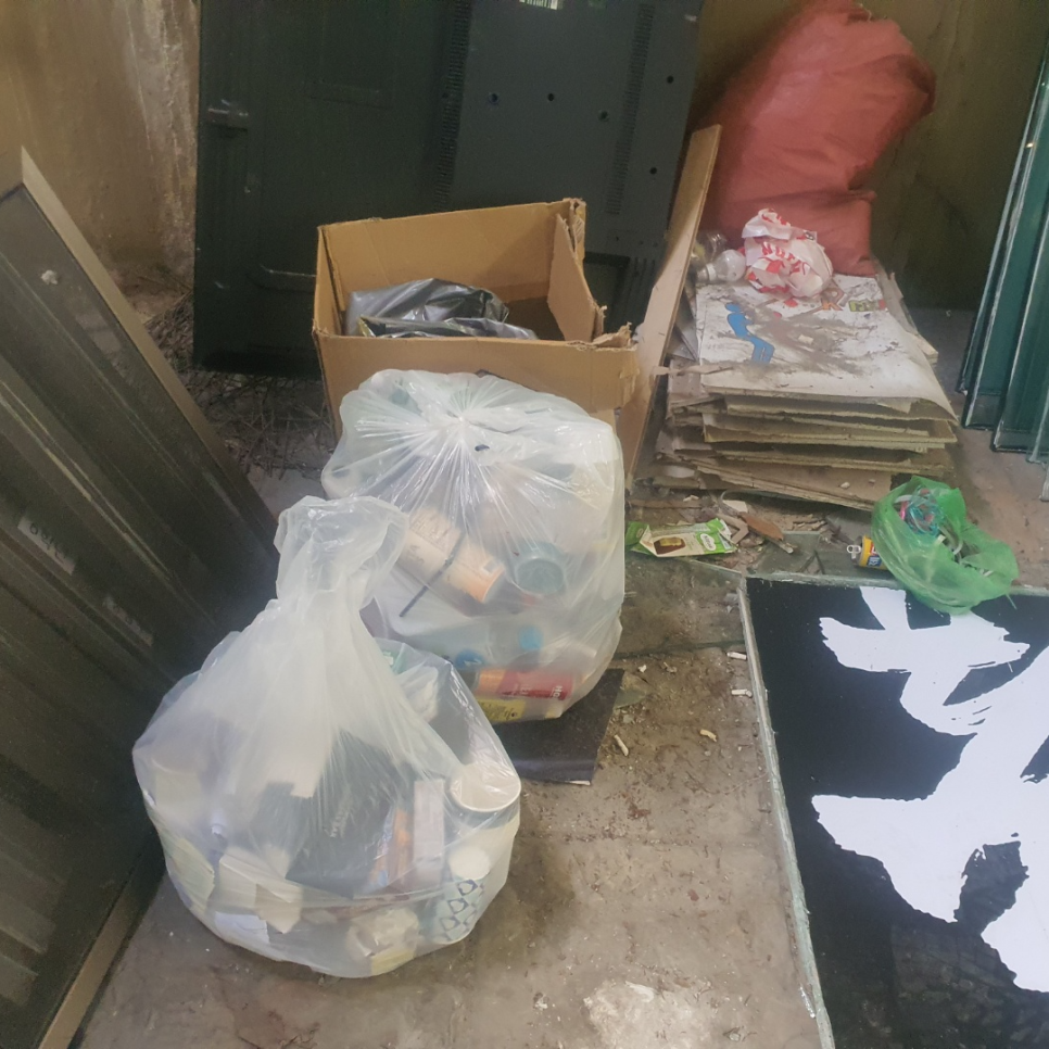다른 곳으로 오니 폐기물이 잔뜩 들어 있는 비닐봉지와 종이상자,