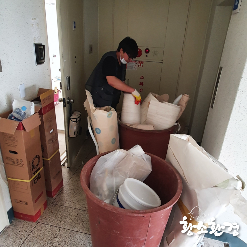 집안을 비우시면서 청소를 하시다가 좁은 복도까지 폐기물이 한가득 쌓이게 되고