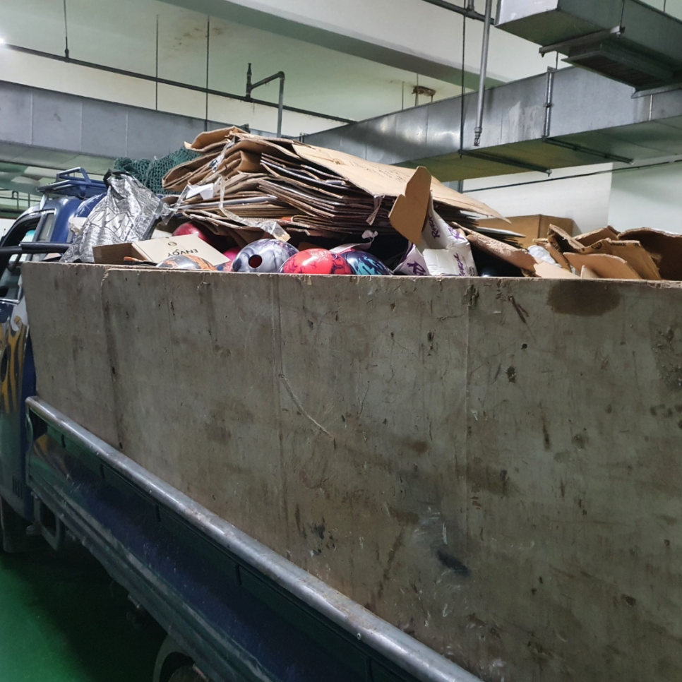고객님께서 문의하셨던 내용은 현장에 많은 폐기물이 쌓여 있는데 종이박스부터 플라스틱,