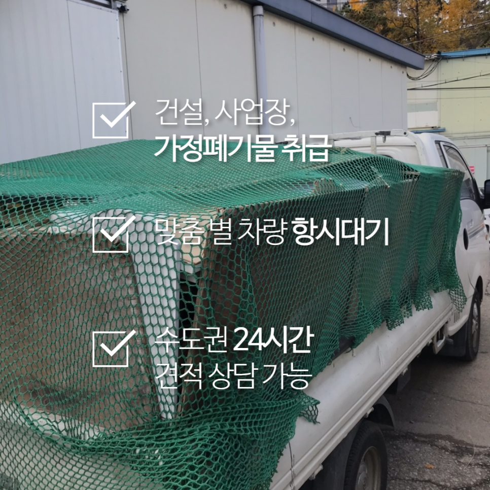 빠짐없이 폐기물을 실어나른 것을 확인하고 현장도 깔끔하게 청소해준 뒤에 트럭에 있는 폐기물이