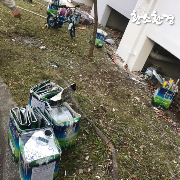 아파트를 새롭게 페인트칠하시면서 작업 도중에 다 쓴 페인트 통이나 비닐, 붓 등