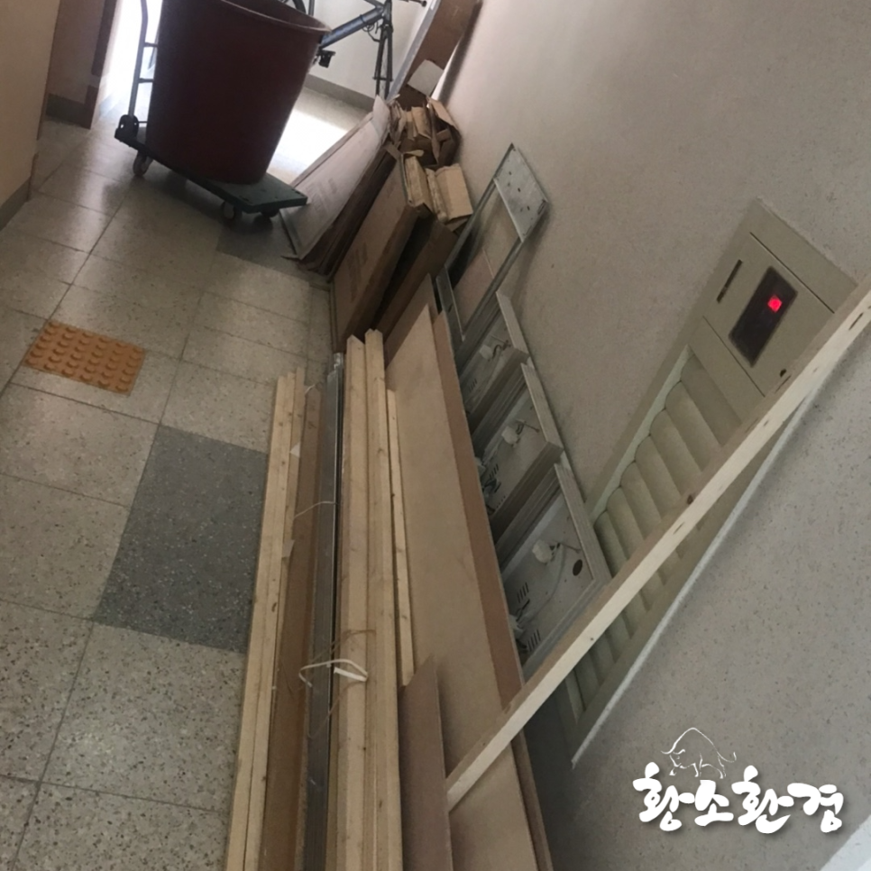 정리하시면서 나온 폐기물을 복도에 놔둔 상태인데 복도가 좁다 보니 폐기물을 빠르게 치우고 싶다고 하셨습니다.