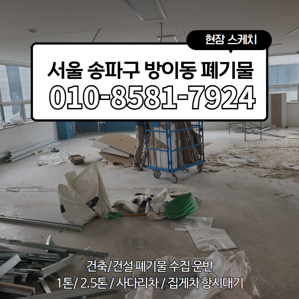 오늘 저희 황소 환경에서 폐기물처리를 하기 위해서 다녀간 현장은 서울 송파구 방이동입니다.
