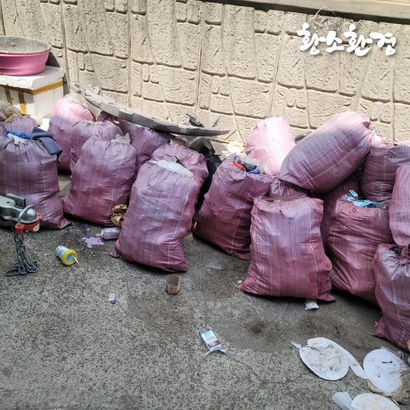 고객님께서 처리해야 할 폐기물을 정리하시면서 전부 마대 자루에 담아 놓다 보니 폐기물이
