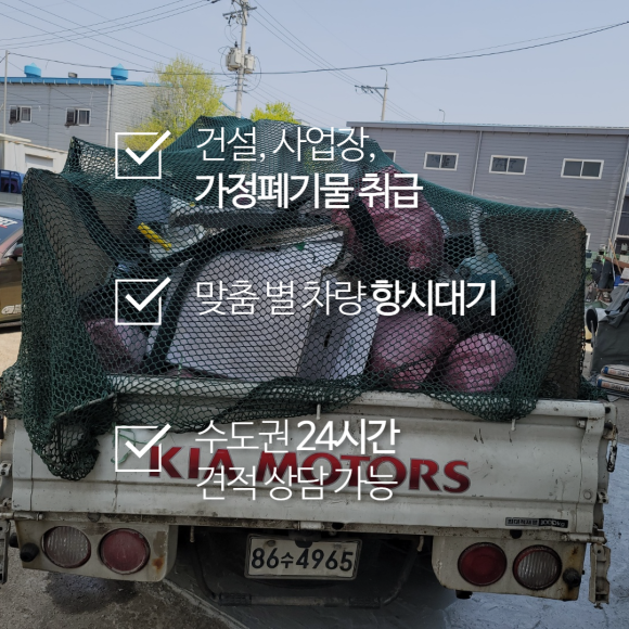 소량에서부터 대량에 폐기물 전부 가성비 좋은 비용으로 처리해드리고 있고,