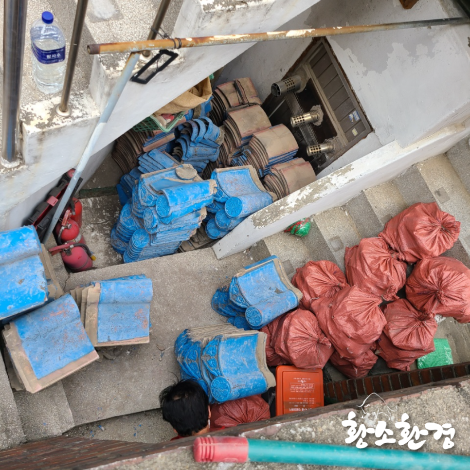 현장에 도착하니 기와장이나 다양한 폐기물이 한가득 들어 있는 마대 자루들이 쌓여 있는 모습이 보입니다.