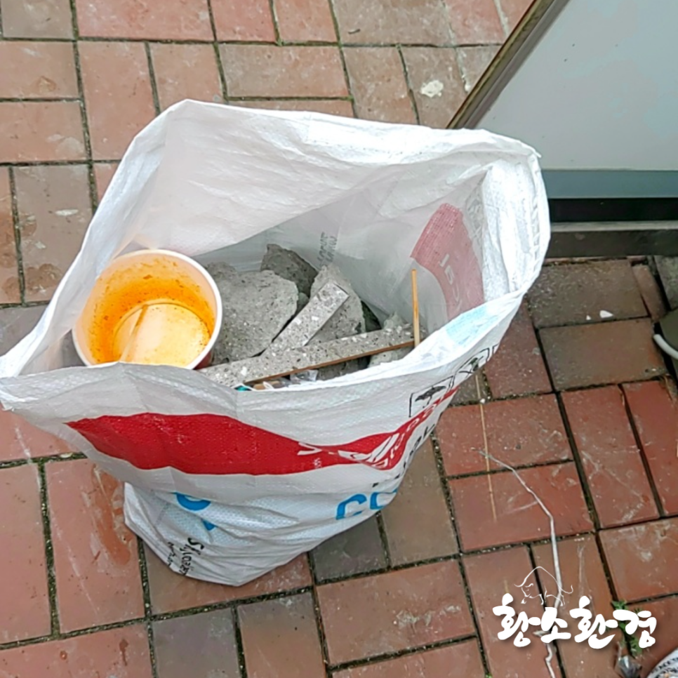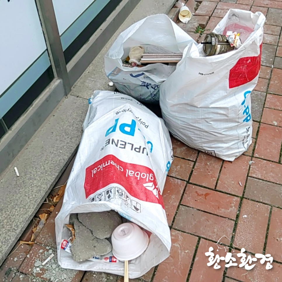 바로 주변을 먼저 정리해주고 폐기물이 들어 있는 자루들 먼저