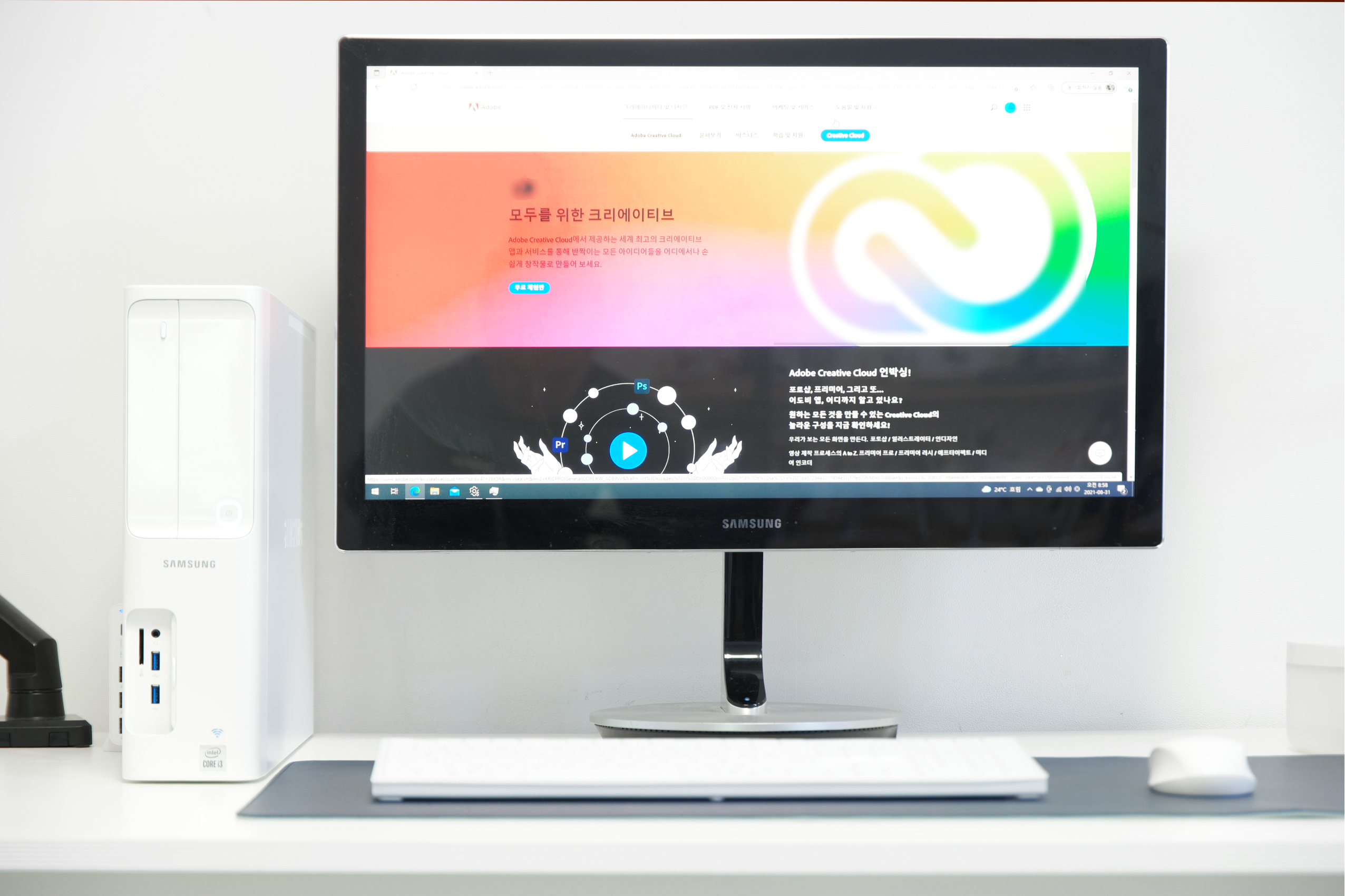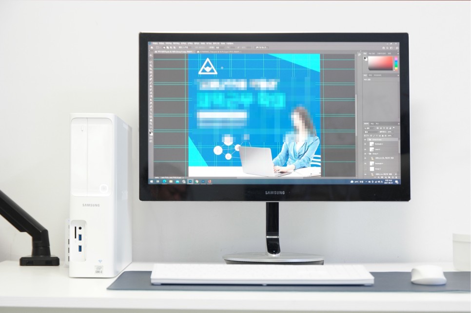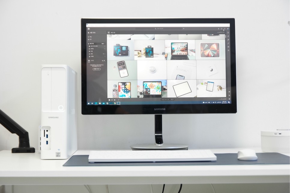 삼성 데스크탑의 경우 무선 키보드와 무선 마우스가 포함이라서 사무실에 설치하고 작업하게 되면 선으로 인한 복잡함이 없고 책상을 넓게 사용할 수 있어서 디자인 작업을 할 때에도 마우스 이동이 편리해 작업하기 좋았습니다.