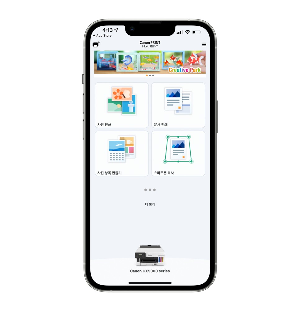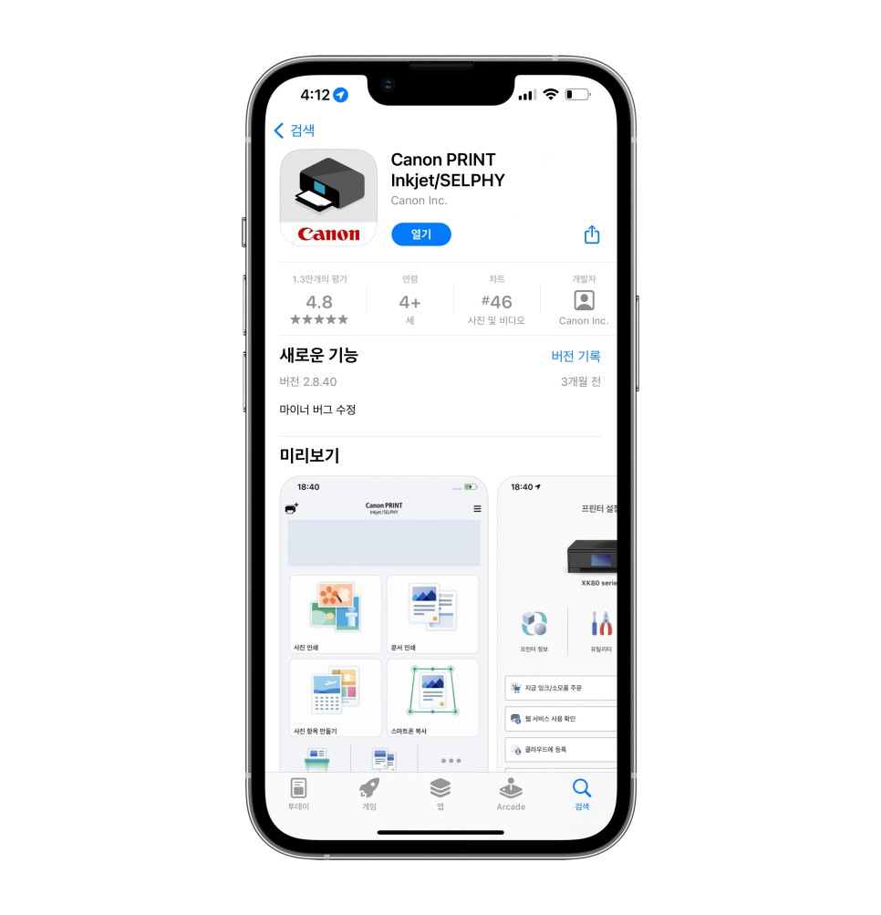 앱스토어에서 캐논 프린터 앱을 다운로드할 수 있습니다. 스마트폰에 있는 사진을 캐논 프린터 바로 연결해서 출력이 가능하기 때문에 꼭 함께 사용하시는 것을 추천드립니다.