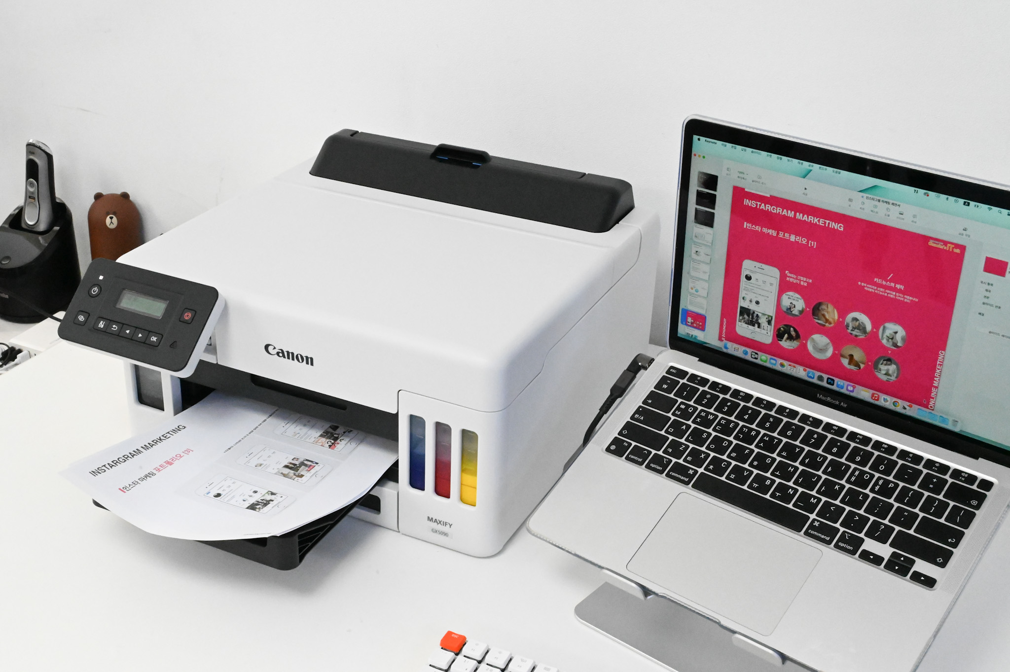 이번에 협력업체에서 거래처를 소개를 해주어서 프레젠테이션을 하게 되었습니다. 그래서 PT를 준비하기 위해서 제안서를 출력했습니다. 예전에는 마케팅을 위한 제안서를 출력하려면 엄청 시간이 많이 걸렸는데, 이번에는 신제품 캐논 잉크젯 GX5090로 빠르게 출력을 했습니다.