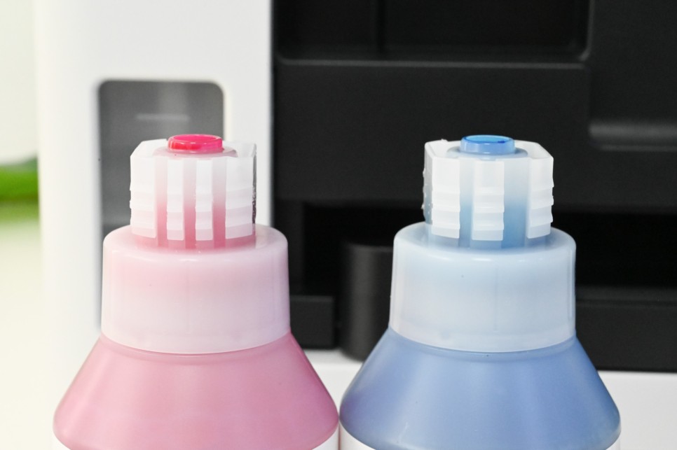 그리고 잉크를 탱크 입구에 넣지 않으면 잉크가 새어 나오지 않습니다. 이제 손에 잉크가 묻는 리필은 없을 것 같습니다. 개인적으로 무한 잉크가 나오기 전에 주사기로 잉크를 리필하던 세대라서 잉크를 넣을때 손과 주변에 잉크가 엄청 묻는 것에 대한 스트레스가 많았습니다.