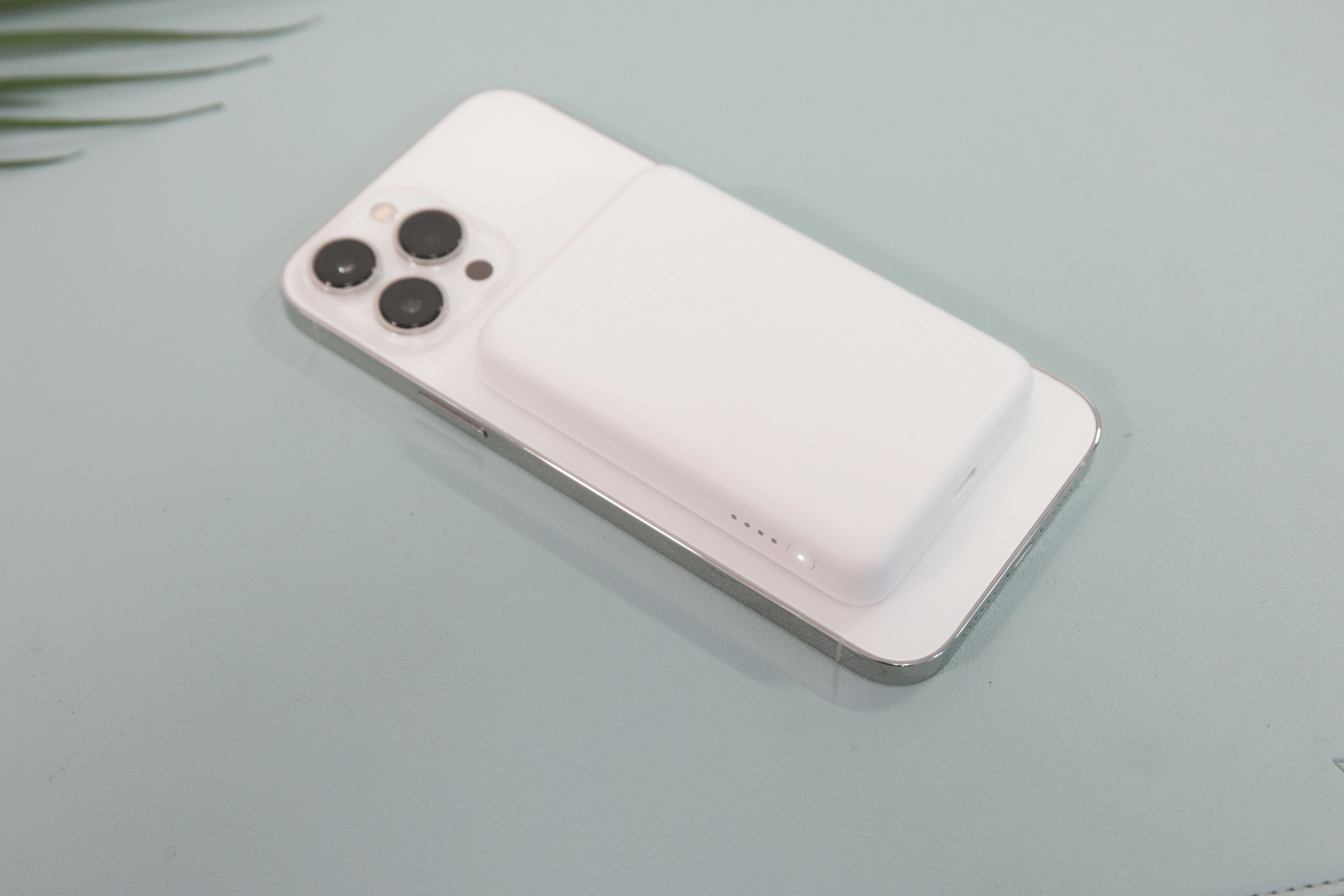 일반적으로 맥세이프 마그네틱 무선 충전 방식으로 충전을 하게 됩니다. 또한 자석을 이용해서 아이폰 13프로맥스에 부착이 되어 있습니다.