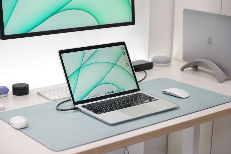 마지막으로 맥북에어 M1과 연결을 해보았습니다. 아직 애플의 실리콘 칩을 지원하는 디바이스들이 별로 없지만, 벨킨에서 빠르게 호환되는 벨킨 썬더볼트 4프로 독 제품을 출시해 문제없이 연결이 가능했던 것 같습니다.