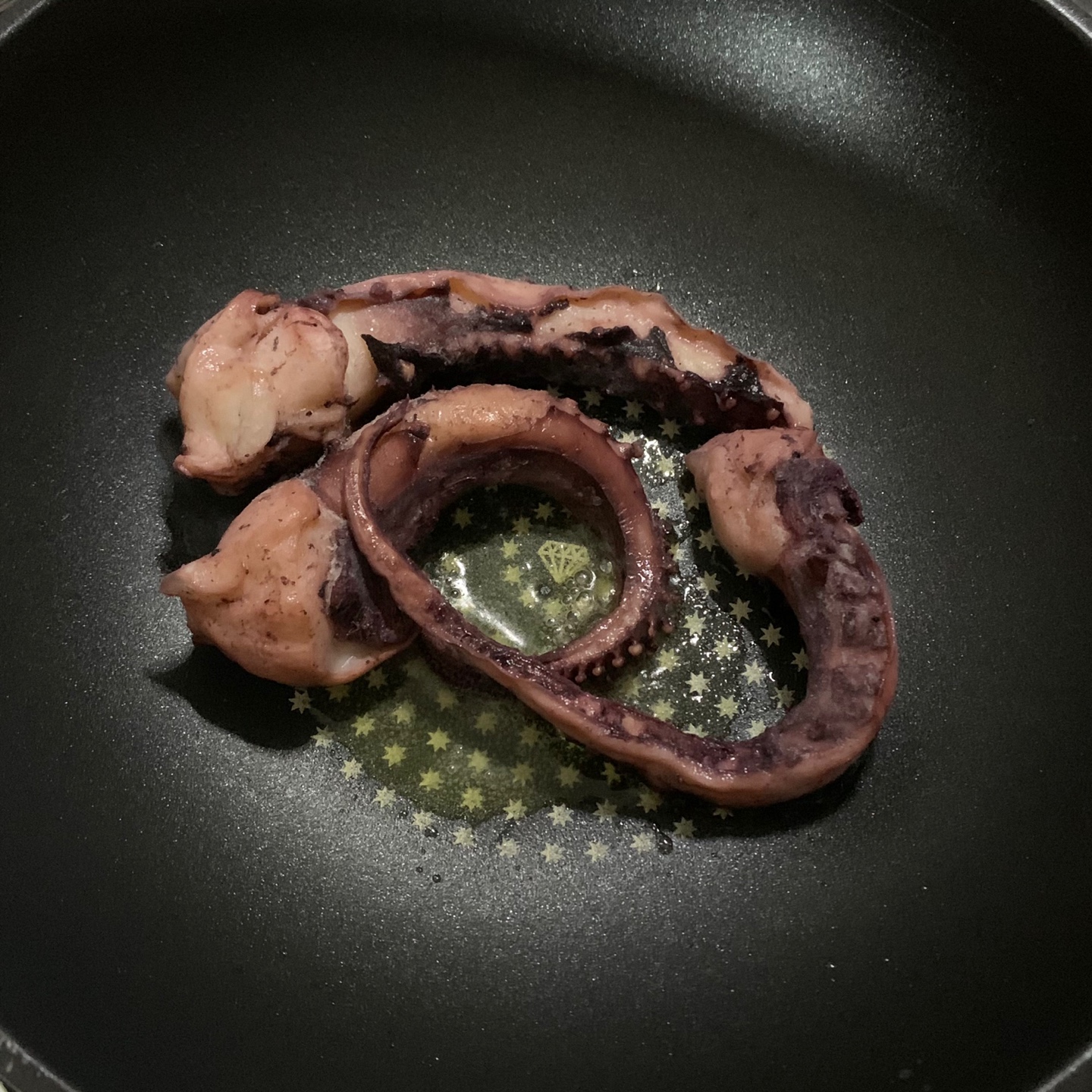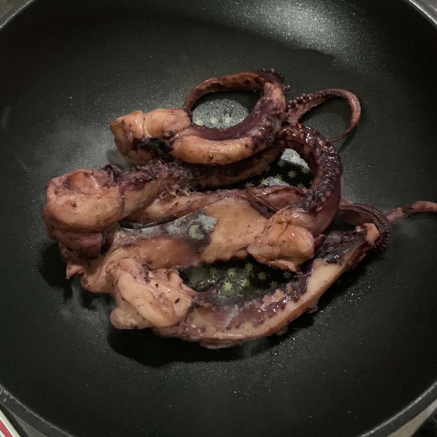 간단하게 조리를 해보면 우선 달궈진 팬에 버터부터 넣어주고 버터가 녹기까지 기다린 다음 문어를 넣어서 굽기만 하면 끝!