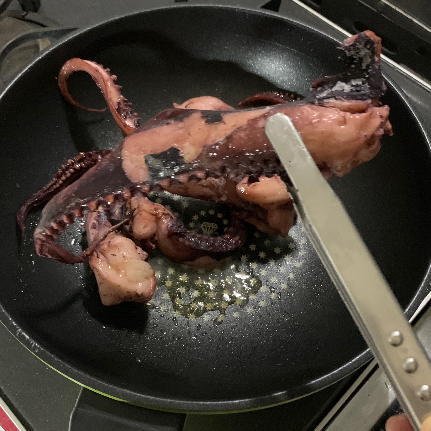 후기도 꼼꼼하게 살펴보고 구매했는데 문어를 꺼내서 팬에 올려보니 생각보다 더 크더라고요.