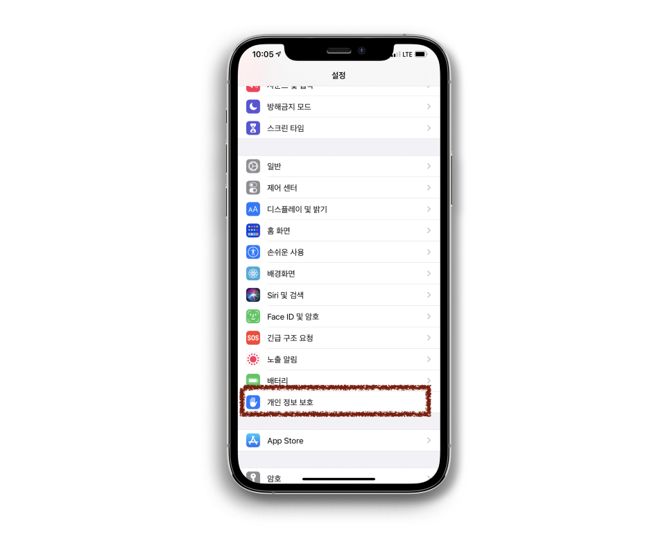 아이폰의 설정에서 개인정보 보호 설정으로 이동을 합니다.