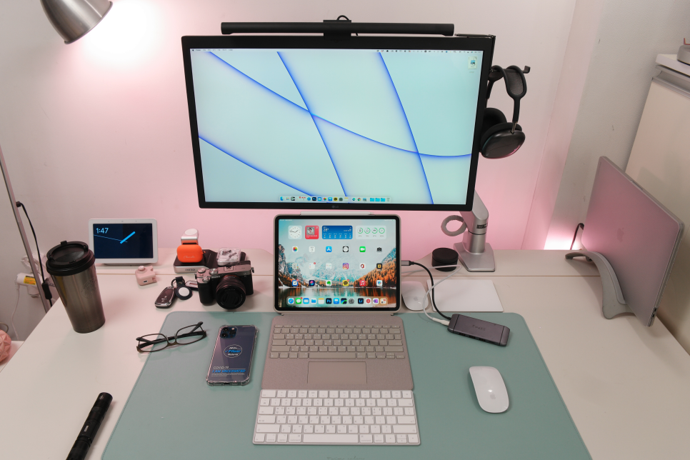 최근에는 서서 일하는 것에 대한 이슈가 없지만 하루에 1 시간 정도 서서 작업을 하는 것도 허리가 편해서 글을 쓸 때 가끔 쓰고 있습니다. 듀얼모니터로 아이패드프로와 외부모니터에 연결한 맥북프로 16인치를 함께 쓰는 설정에 대한 이야기를 해보았습니다. 베타 8을 쓰고 있는데 아직 유니버설 컨트롤이 적용이 안되었는데, 공식 업데이트가 되면 적용이 될 것 같습니다.