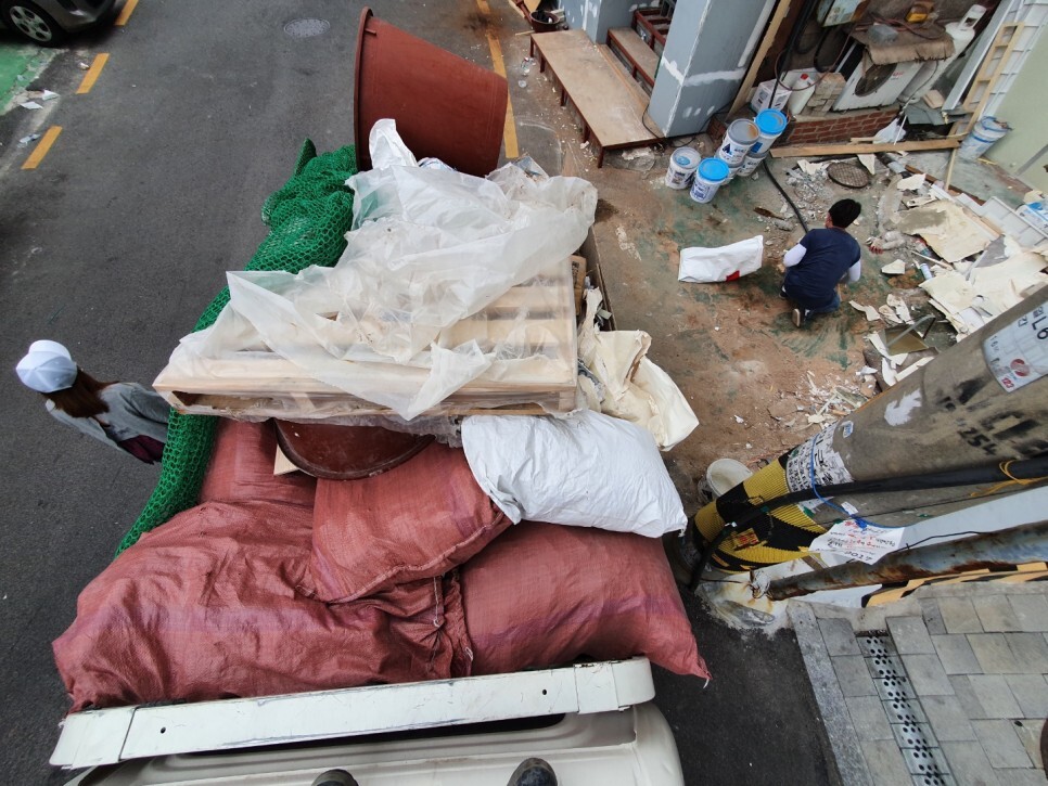 일상적인 혼합 폐기물 현장이며 별 대수롭지 않게 수거할 수 있는 곳들인 것입니다. 1톤 폐기물 한차 정도는 혼자서도 해결이 가능하지만 어느 정도의 양이며 많은 시간이 소요되지 않습니다.