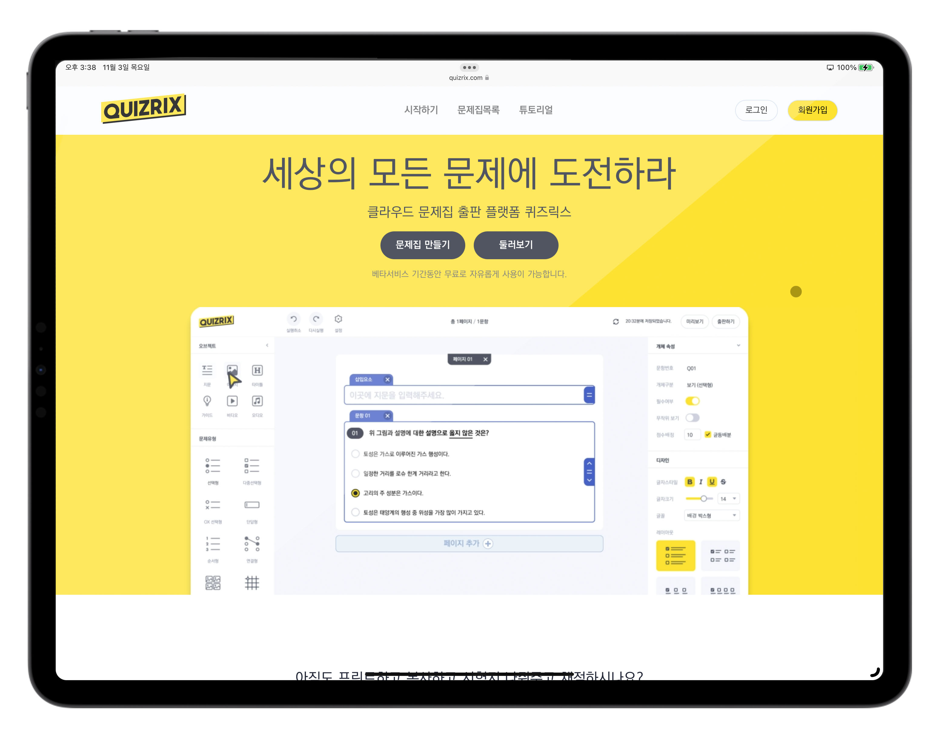 종이책과 종이 문제집이 사라지고 요즘, 학원이나 학교에는 태블릿이나 노트북이 많이 보급되어서 사용되고 있다고해요. 이번 기회에 퀴즈릭스와 같은 솔루션을 이용해 빠르게 변하는 교육 시장에 발맞추어 보는 것은 어떨까요?