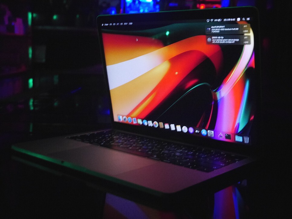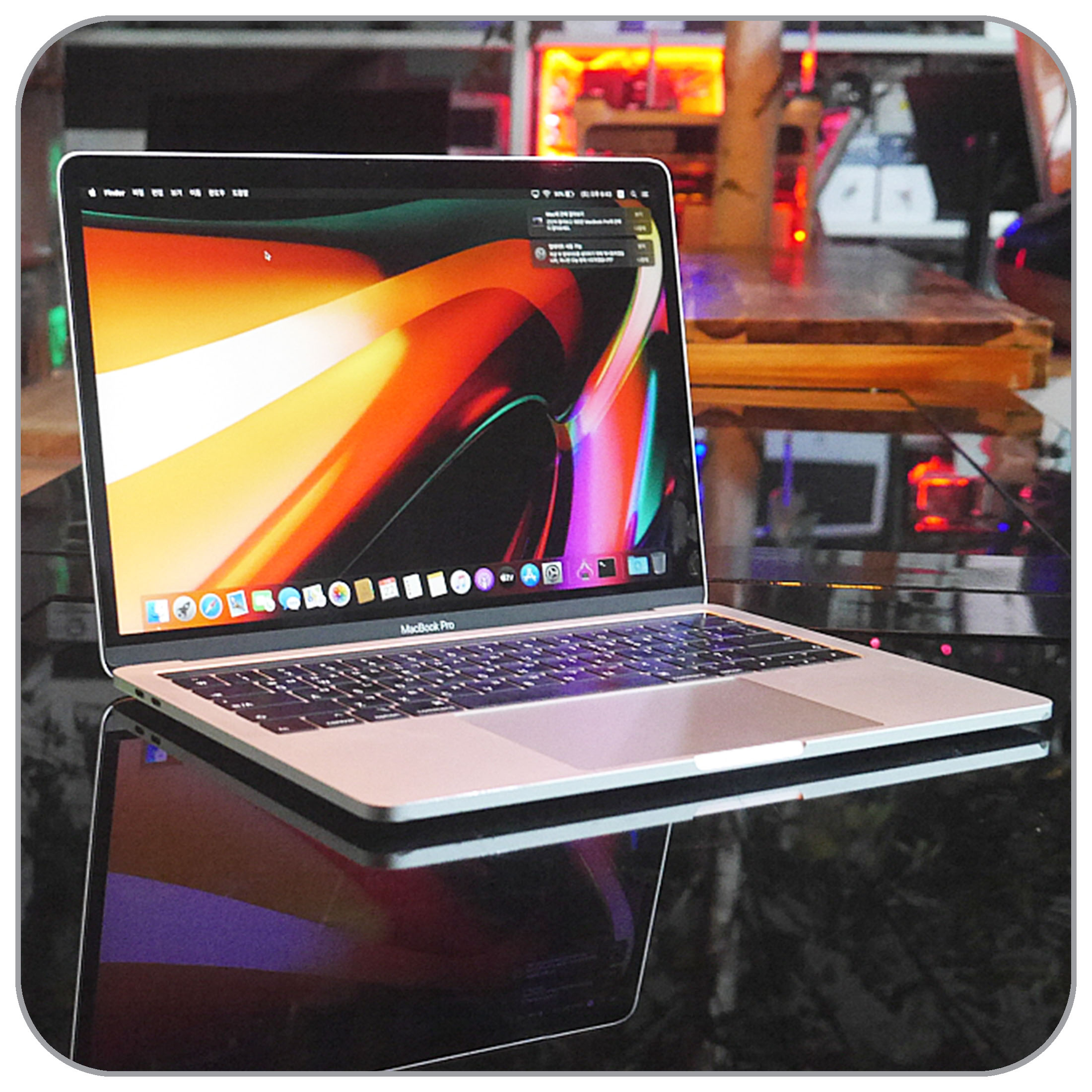 조명과 멋들어지게 어우러진 맥북프로