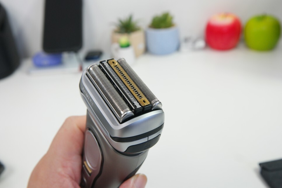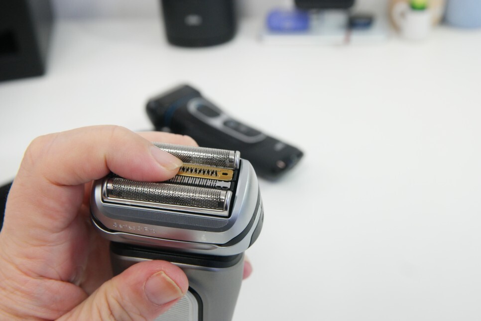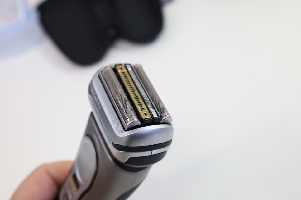 이전 버전과 차이점이 프로 블레이드라고 할 수 있습니다. 트리머의 두께가 30% 더 얇아지고, 35% 더 입구가 넓어져서 0.05mm까지 밀착면도가 가능합니다. 게다가 4만번의 커팅액션과 1만 번의 미세진동으로 제가 기존에 쓰던 시리즈9 보다 10% 정도 면도 속도가 올라가고 있습니다. 그만큼 면도가 잘되고 있습니다.