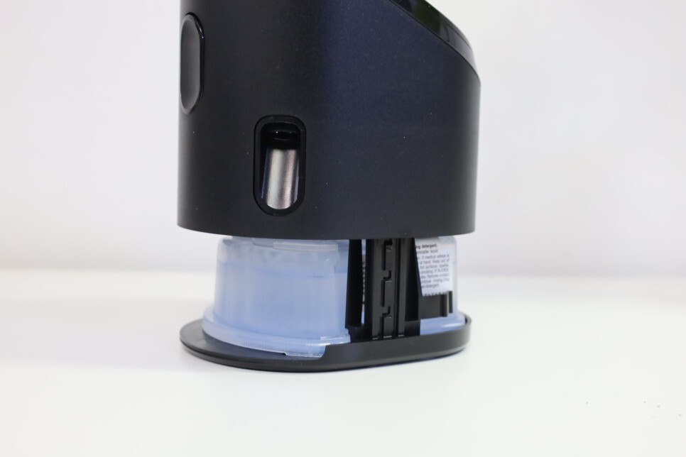 세척은 물론 충전이 되기 때문에 거치를 하면 충전과 세척을 할 수 있는데, 세정액으로 깔끔하게 청소도 해주고 추가적으로 윤활 작용을 하기 때문에 브레이드의 면도날을 최상의 상태로 유지해 언제든 밀착된 면도 및 피부 자극 없는 편안한 면도가 가능하며 면도날의 수명도 길어집니다