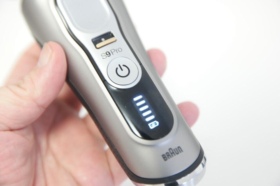 전원 버튼 아래의 프로 디스플레이는 사용자의 면도하는 방식을 기억해 그에 따른 세척 시기까지 알려주니 정말 편합니다. 1시간 충전시 60분간 무선 면도가 가능하며 배터리 잔량 역시 프로 디스플레이를 통해 확인할 수 있습니다.