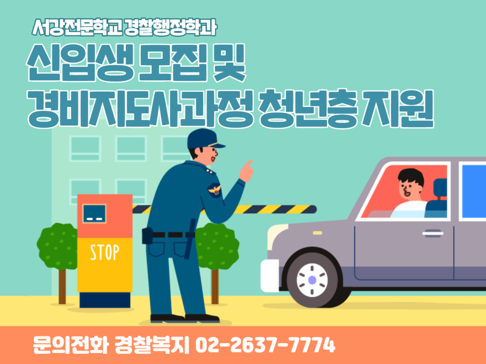 일반경비원 신임교육과정을 한 번 소개하려고 합니다. 서강 전문학교 경찰행정학과 신입생 모집 및 경비지도사과정 청년층 지원에 대한 소개입니다.