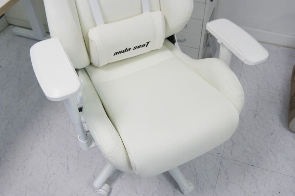 아이보리 느낌의 화이트색상이여서 오염 등이 걱정이 되었는데, 일주일 이상 써보아도 거의 오염 등이 없었습니다. 시트 부분도 자동차의 운전석에 적용되는 디자인으로 장시간 앉아 있어도 문제가 없는 것 같습니다.