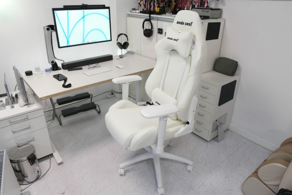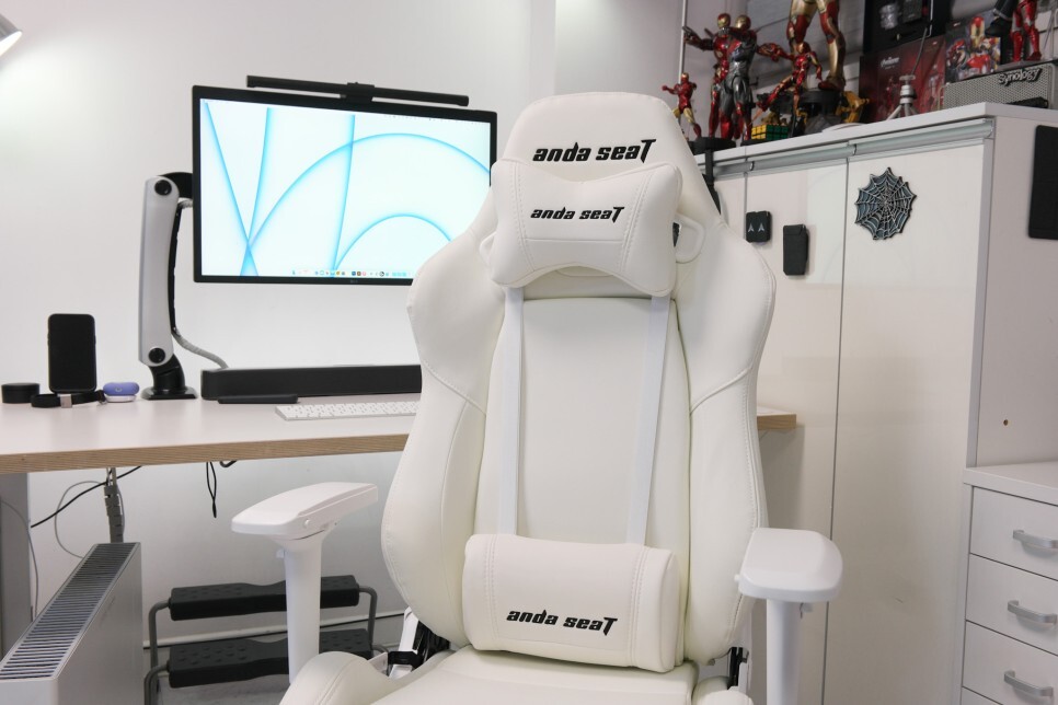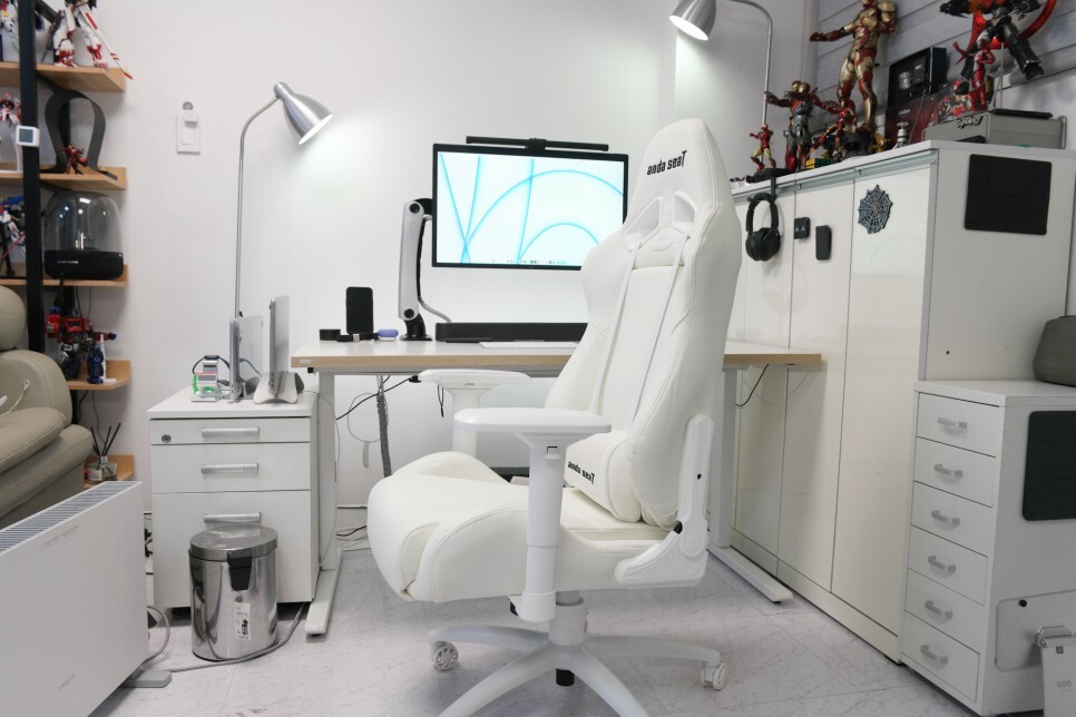 사무실에 들어와서 제 자리로 갈 때 기분이 매우 좋습니다. 의자의 디자인은 직접 사용할 때는 보이지 않지만, 책상 주변에 화이트 느낌으로 통일이 되니 상당히 좋은 것 같습니다.