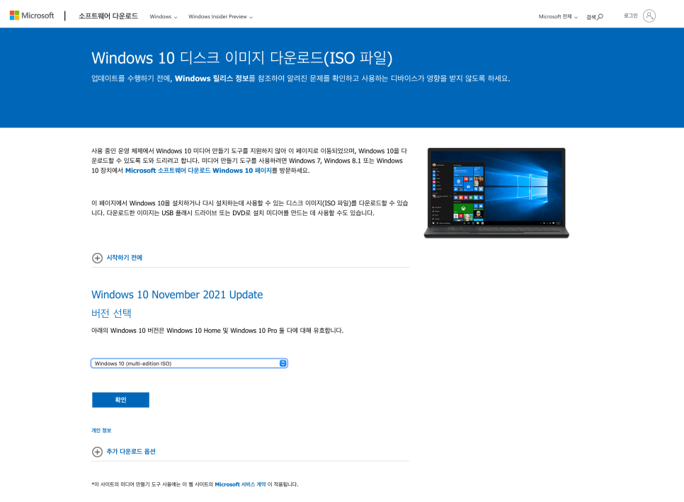 지원소프트웨어를 먼저 다운로드 받으면 바로 윈도우 설치로 넘어갑니다.