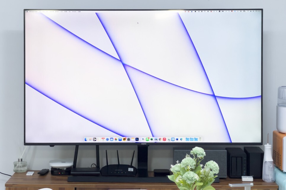 맥북프로와 에어플레이로 연결을 했습니다. 아쉬운 점이라면 듀얼모니터를 쓰는 상태에서는 추가가 되지않아 외부모니터를 바로 미러링합니다. 트리플 모니터로 쓸 수는 없습니다. 영상도 가능하기 때문에 활용성이 높습니다.