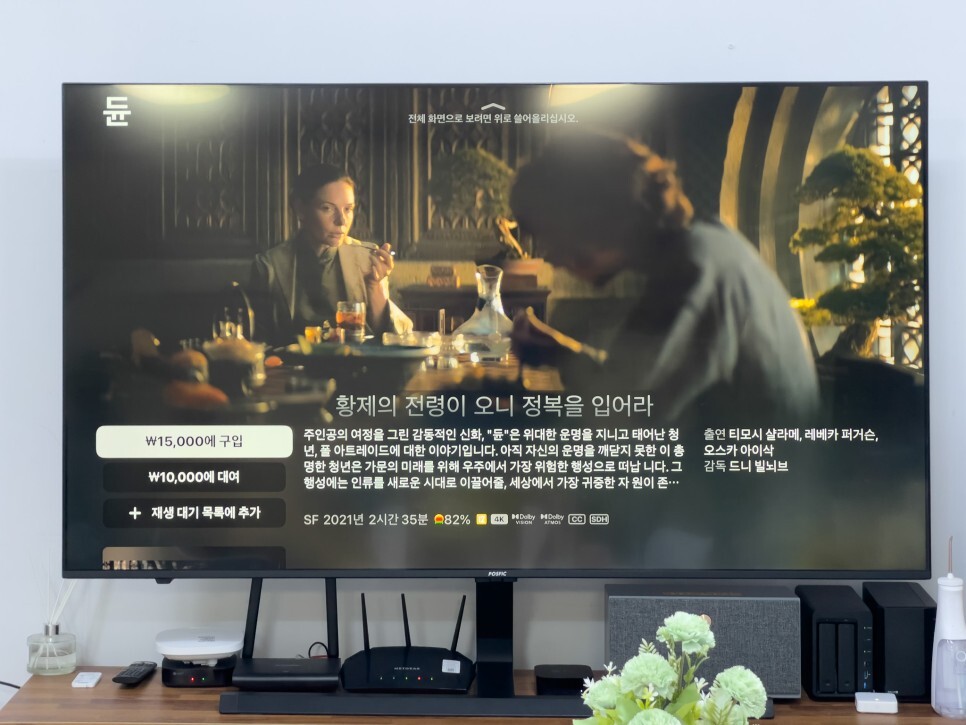 평일에는 거의 사용하지 않고 주말에 쉬면서 가끔 보고 있습니다. 하드웨어에서 HDR과 돌비애트모스를 지원합니다. 에어팟프로로 영화를 보면 정말 몰입도가 끝장입니다.