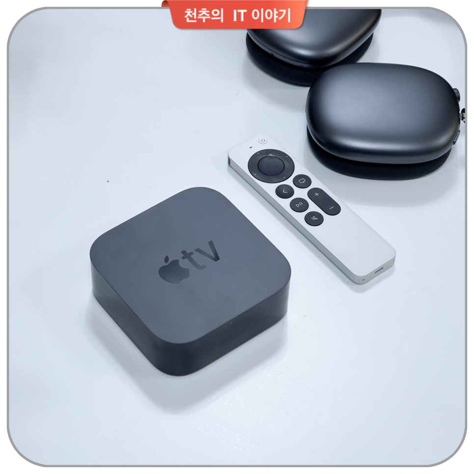 애플TV라고 하면 4K 하드웨어적인 제품이 있습니다. 애플에서 만든 TV와 연결되는 iOS 디바이스입니다. 최근에 국내에서 출시된 OTT 셋톱 박스라고 생각하시면 될 것 같습니다.