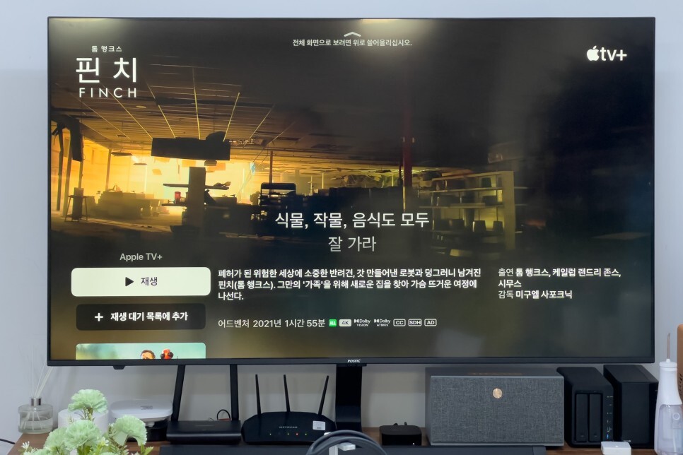 톰 행크스의 핀치라는 영화를 보았는데, 감동적인 내용이라고 하지만, 가족영화라 취향에 맞지 않았는데, 끝까지 빠르게감기 없이 보았습니다. 에어팟 맥스의 공간 음향과 조합되면 정말 몰입도가 장난 아닙니다.