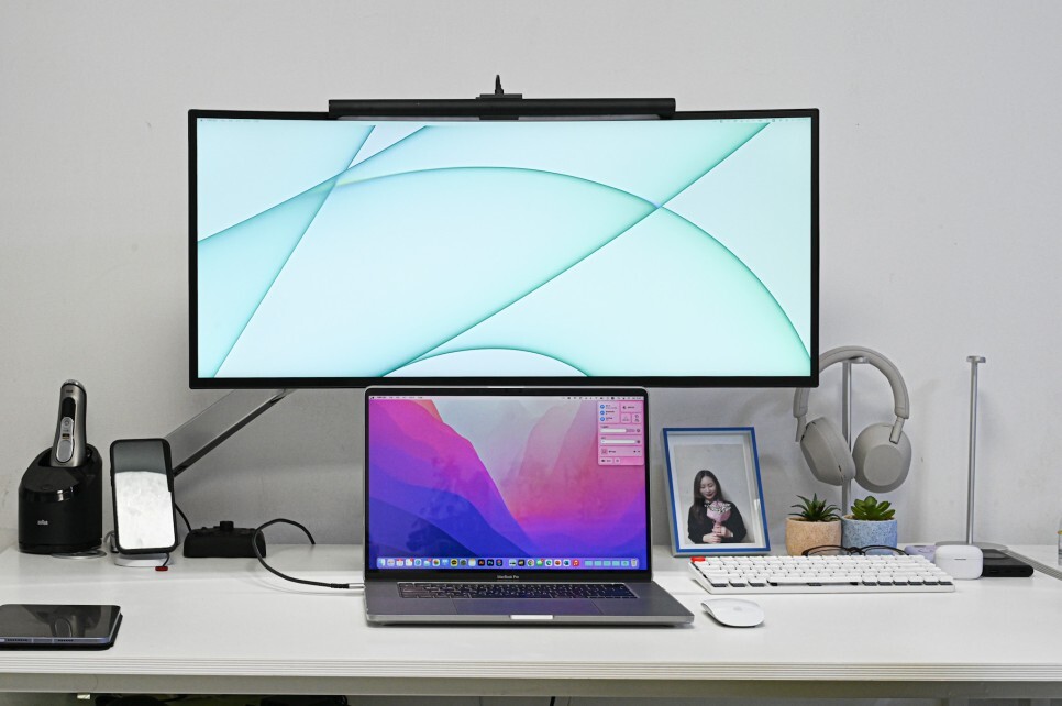 막상 업무에 사용을 해보니 울트라와이드 화면도 편한 느낌이어서 조금 더 편하게 작업하려고 가로 듀얼 모니터 환경을 만들려고 한 것입니다.