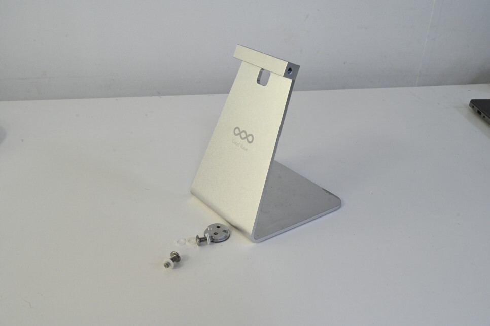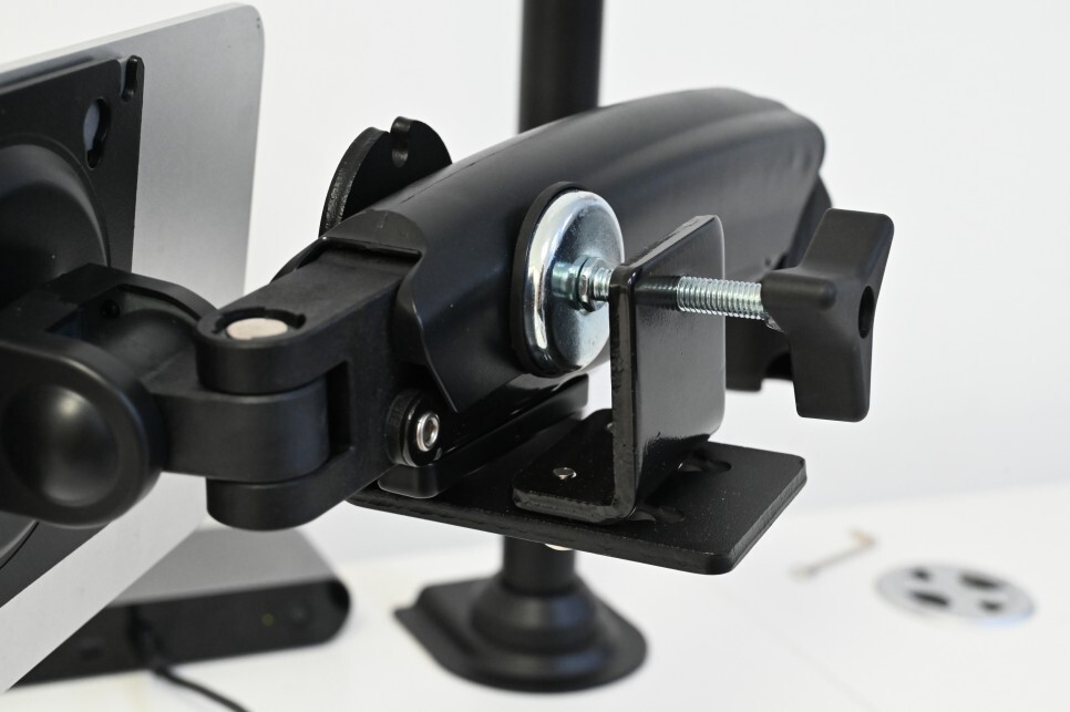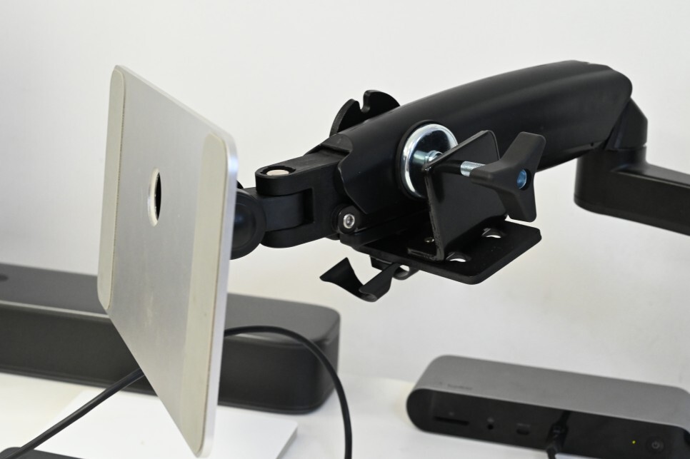책상에 고정하는 부위인데, 무게추로 사용했습니다. 아이패드가 없는 상태에서도 안정되게 위치를 잡을 수 있습니다.
