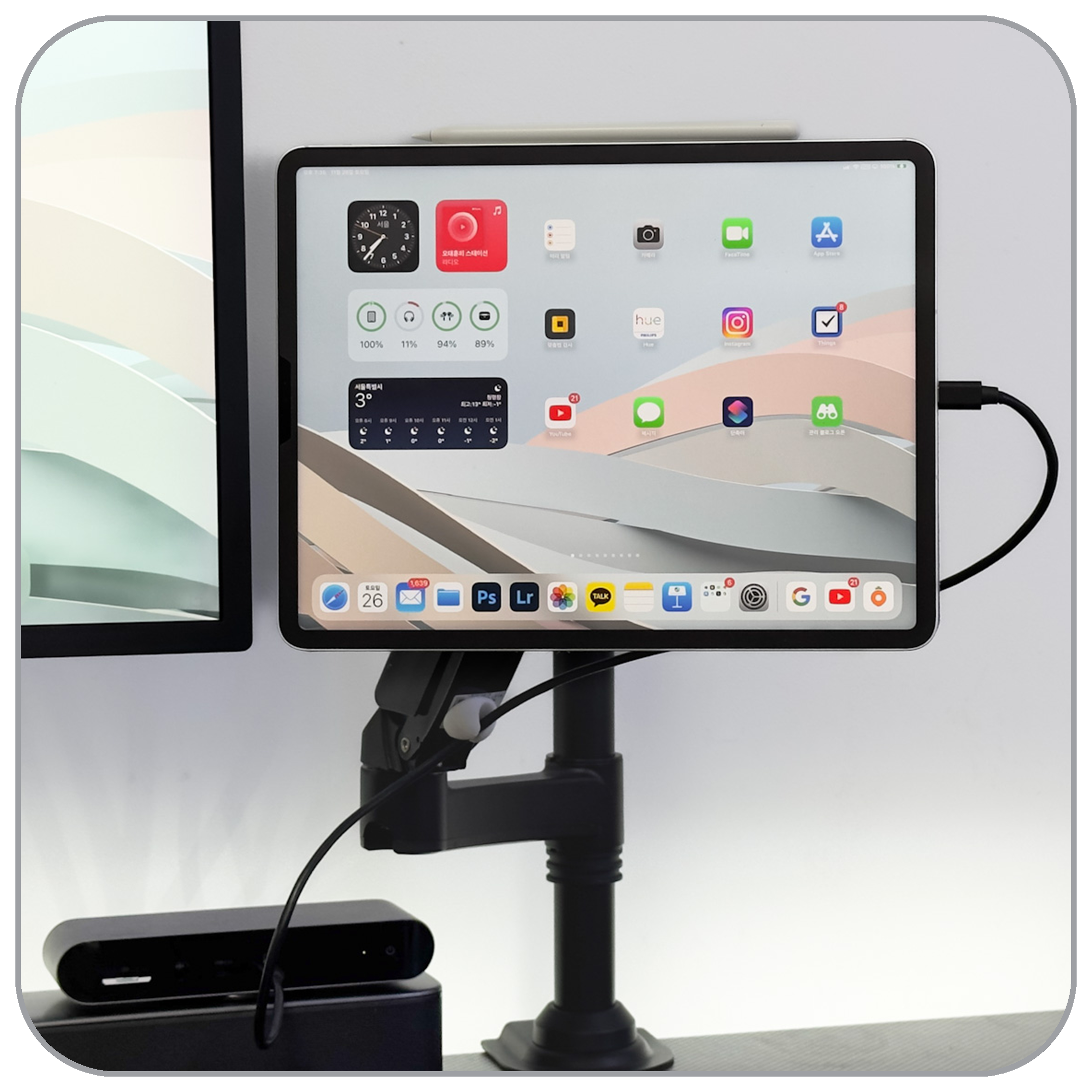 이제 다양하게 아이패드를 모니터 암으로 사용할 수 있게 되었습니다.