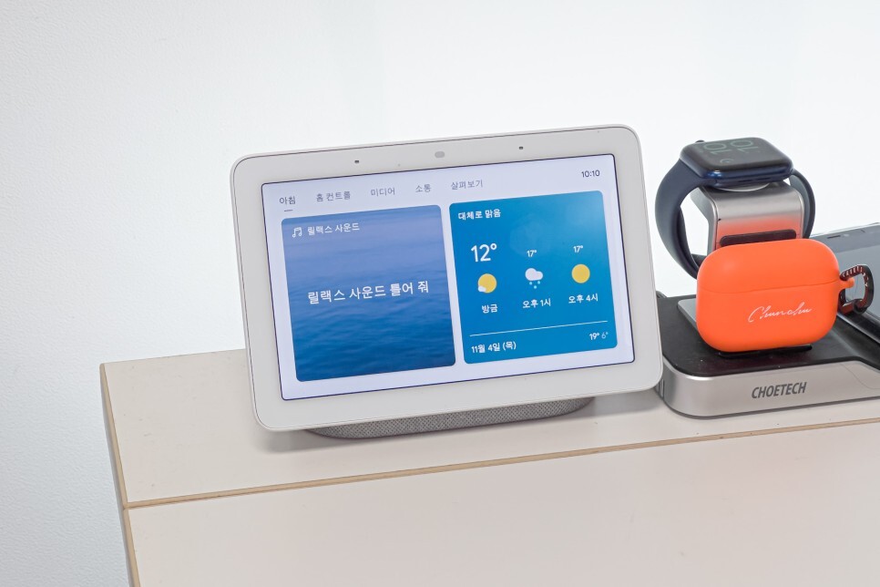 구글 홈 미니로 교체를 한 이유는 디스플레이가 있기 때문에 멀티 미디어 컨트롤에서 편리함은 크지만, 디스플레이가 있는 네스트 허브를 책상에 놓고 있기 때문에 집중도가 분산되고 사이즈도 크기 때문에 책상에서 디바이스 리뷰를 많이 하는데, 제품 보다 넥스트 허브다 더 눈에 띄여서 심플한 디자인의 구글홈미니로 교체 한 것입니다.