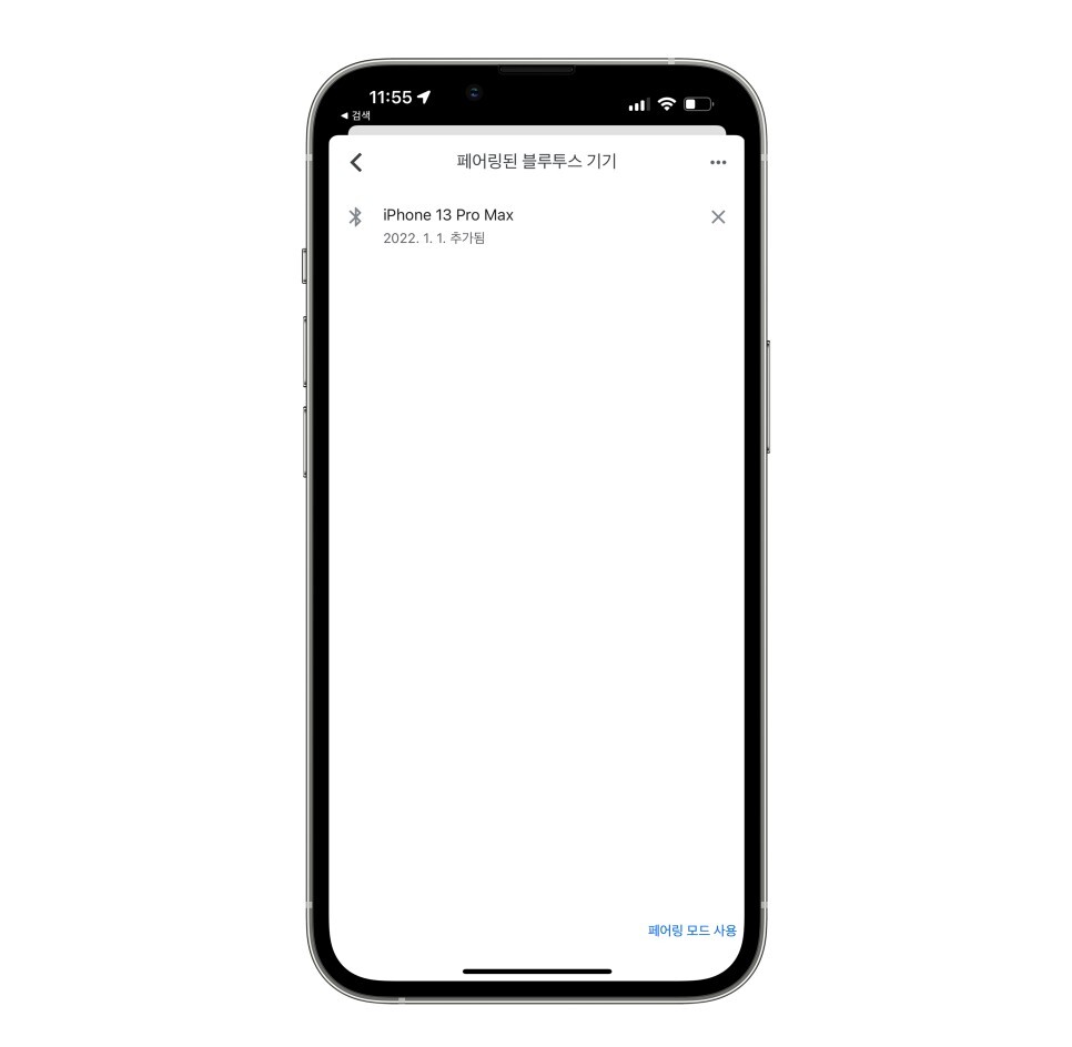 아이폰 설정에서 블루투스를 연결하면 페어링된 블루투스 기기에 아이폰이 추가된 것을 확인 할 수 있습니다.