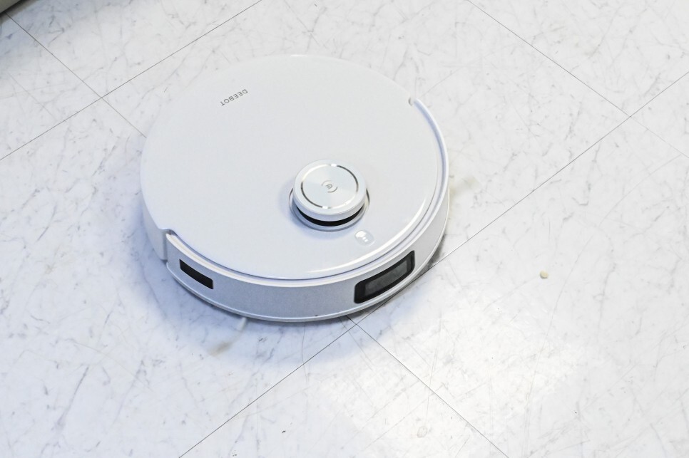장애물이 많은 곳에서도 이곳 저곳 돌아다니면서 똑똑하게 청소를 하고 있습니다. AI가 없는 제품은 원탁 다리에 올라가다 걸려서 오류 메시지가 나오는 경우가 있는데, 구석구석 잘 돌아다니면서 청소를 하고 있습니다.