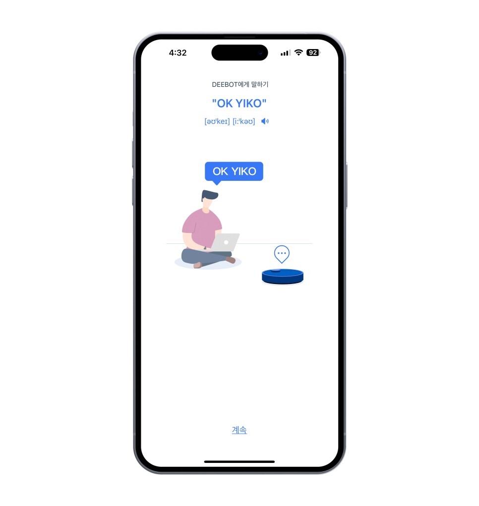 앱을 설치하면 로봇청소기와 상호작용이 가능한 솔루션으로 음성 명령 등으로 청소를 시작할 수 있습니다.